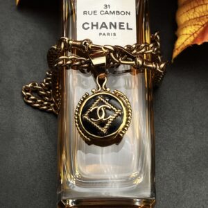 “Eloise” Vintage Chanel Black Gold Button Pendant