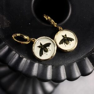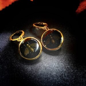 “Pascale” Black Gold Vintage Gucci Bee Button Earrings