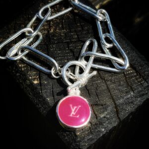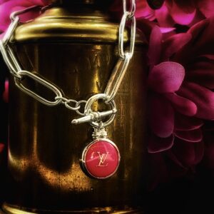 Originally from the inside pocket of a Louis Vuitton handbag circa 1980s, these zipper pulls have been transformed into elegant, wearable jewellery.