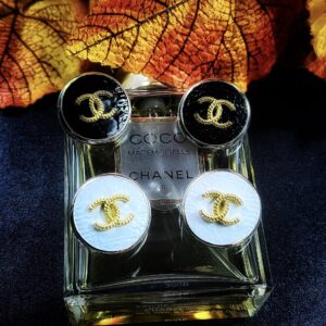 “Annie” Petite Black Gold Chanel Button Earrings