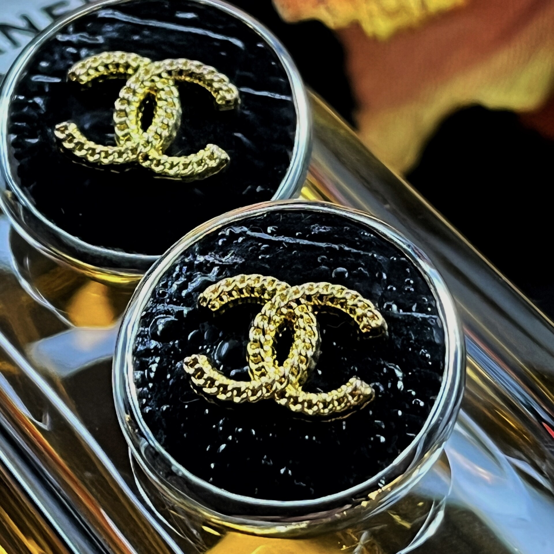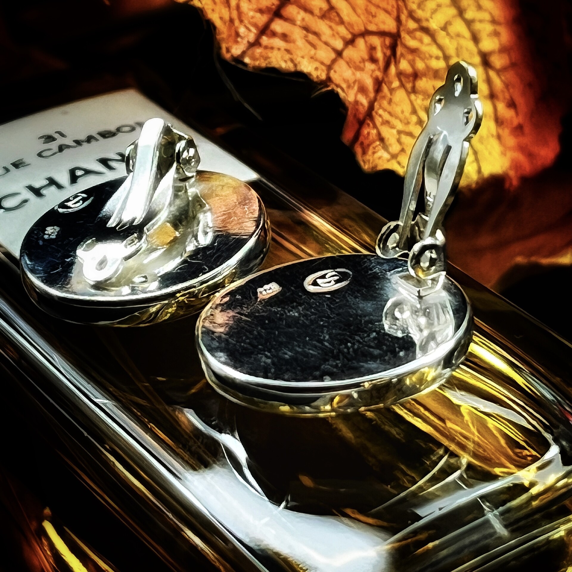 The Chanel logo itself is wonderfully detailed, with a textured, three dimensional finish that brings it to life. This raised gold emblem ensures the earrings look just as striking from the side as they do from the front. Although the logo is a warm, rich gold tone, I’ve chosen to set these earrings in solid sterling silver. I love the way the cool silver enhances and elevates the gold, allowing the logo to truly stand out. Gold plating is also available if preferred.