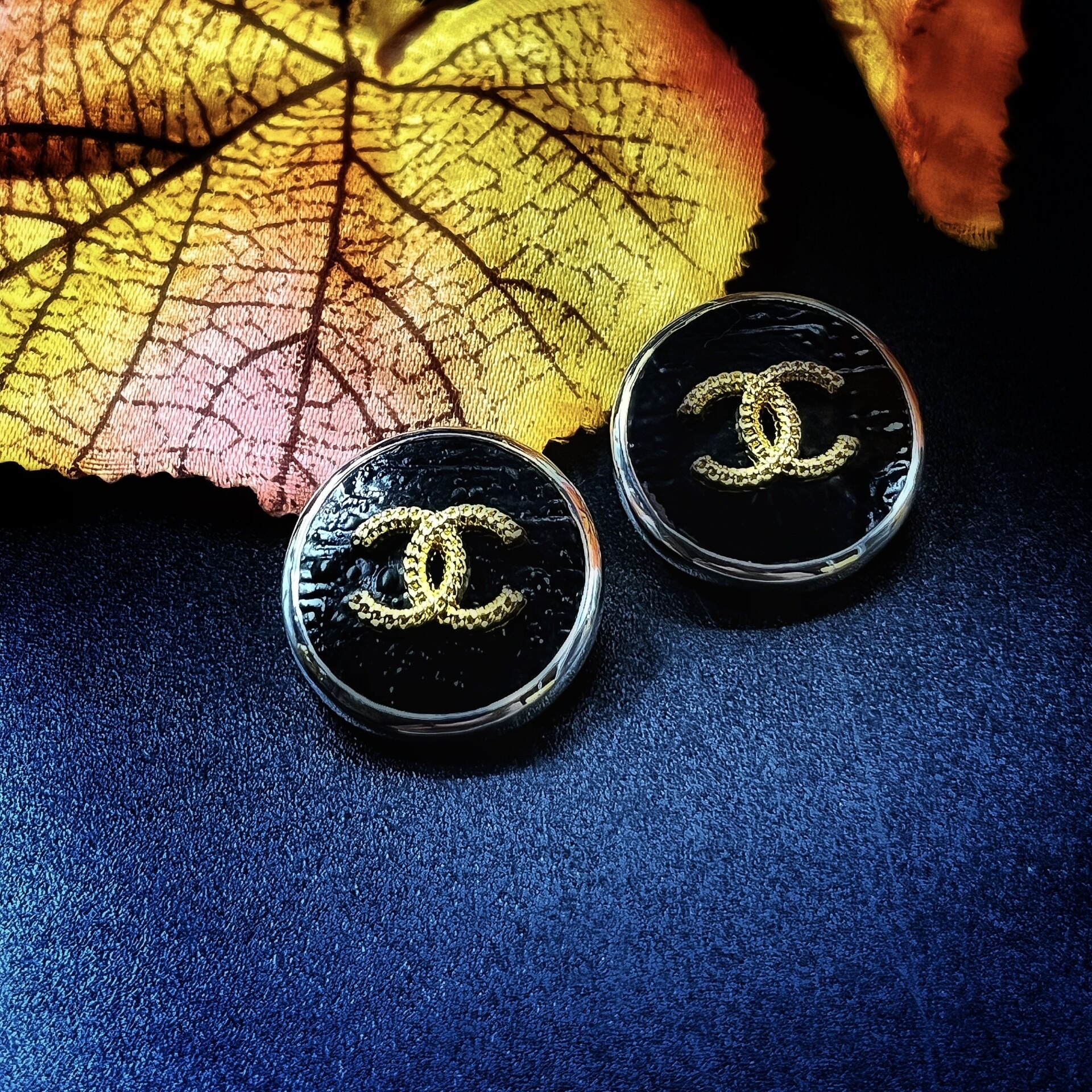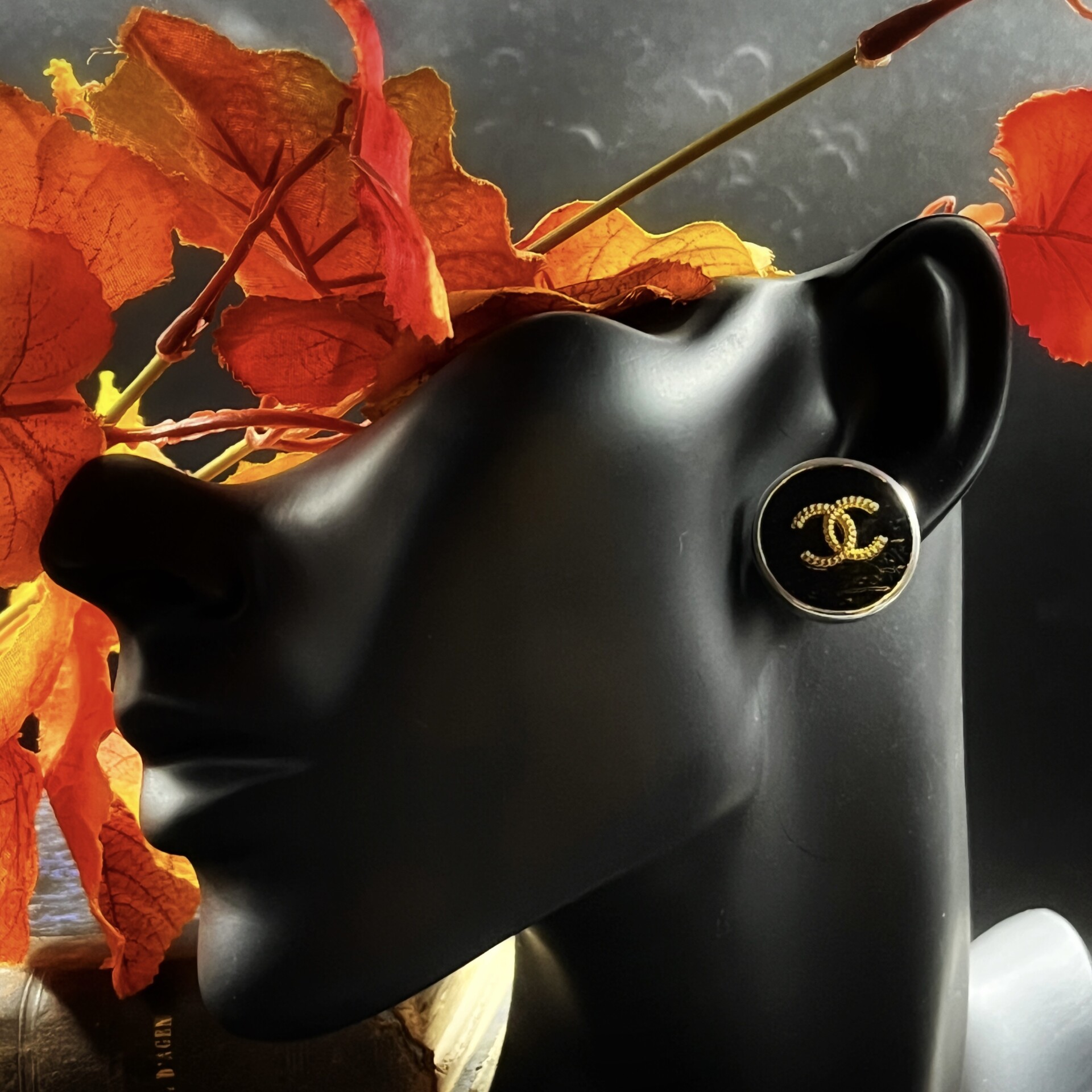 These vintage Chanel button earrings are unapologetically big, bold and gloriously clip on. The original buttons date to the early 1970s and were once worn on a full length Chanel coat, created at a moment when fashion was beginning to embrace the striking power of monochrome. Confident, graphic and effortlessly chic, these earrings celebrate a pivotal era in fashion history while feeling entirely relevant today.