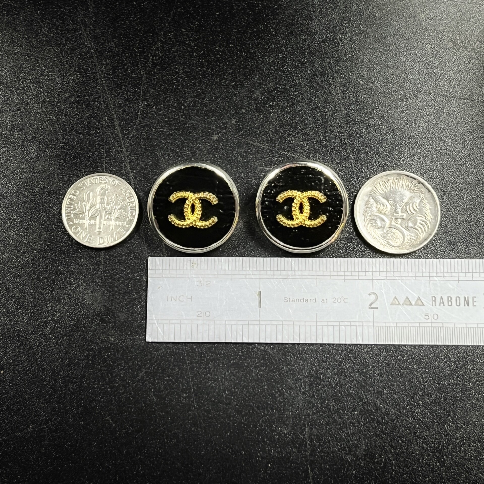 The early 1970s marked a shift towards simplicity with impact. Monochrome dressing began to emerge as a statement of modernity, favouring contrast, clarity and confidence over excess colour and pattern. Black and white became symbols of strength and sophistication, a movement that flowed seamlessly into the bold silhouettes of the 1980s and continues to influence contemporary style today. These buttons originally adorned a black woollen Chanel coat, finished with white accents around the collar, white detailing down either side of the buttons and crisp white piping at the sleeves. The coat featured eight buttons in total, four black and four white, a detail I find endlessly inspiring.