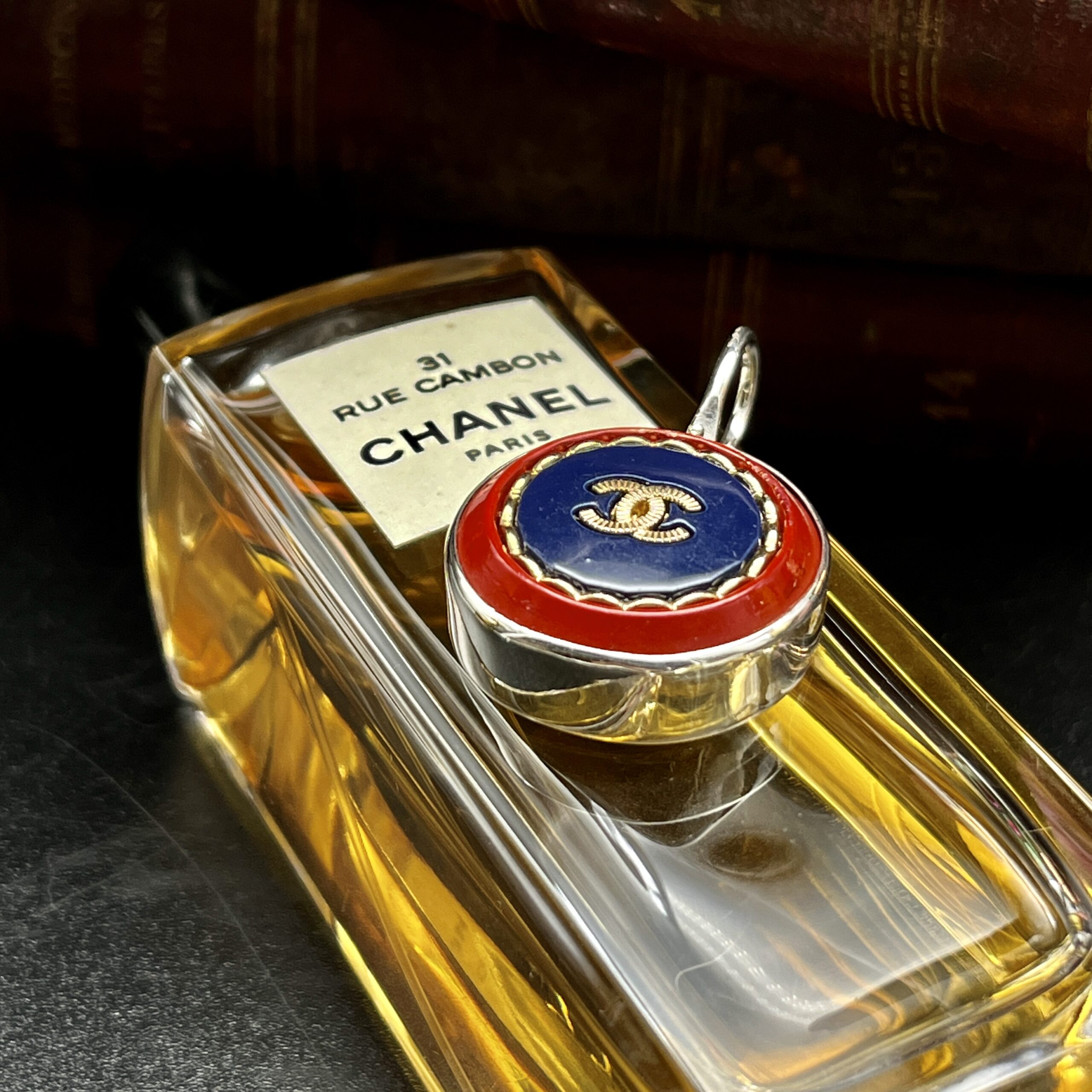“Lou” Vintage Blue and Red Chanel Button Pendant