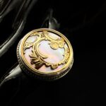 This button grabbed my attention immediately. The intricate brass pattern layering the mother of pearl is just something to be seen.