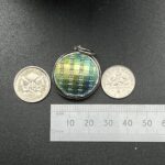 Design Features: Harlequin colour play with shifting blues, greens and golden tones, textured silver bezel, artisan bail.