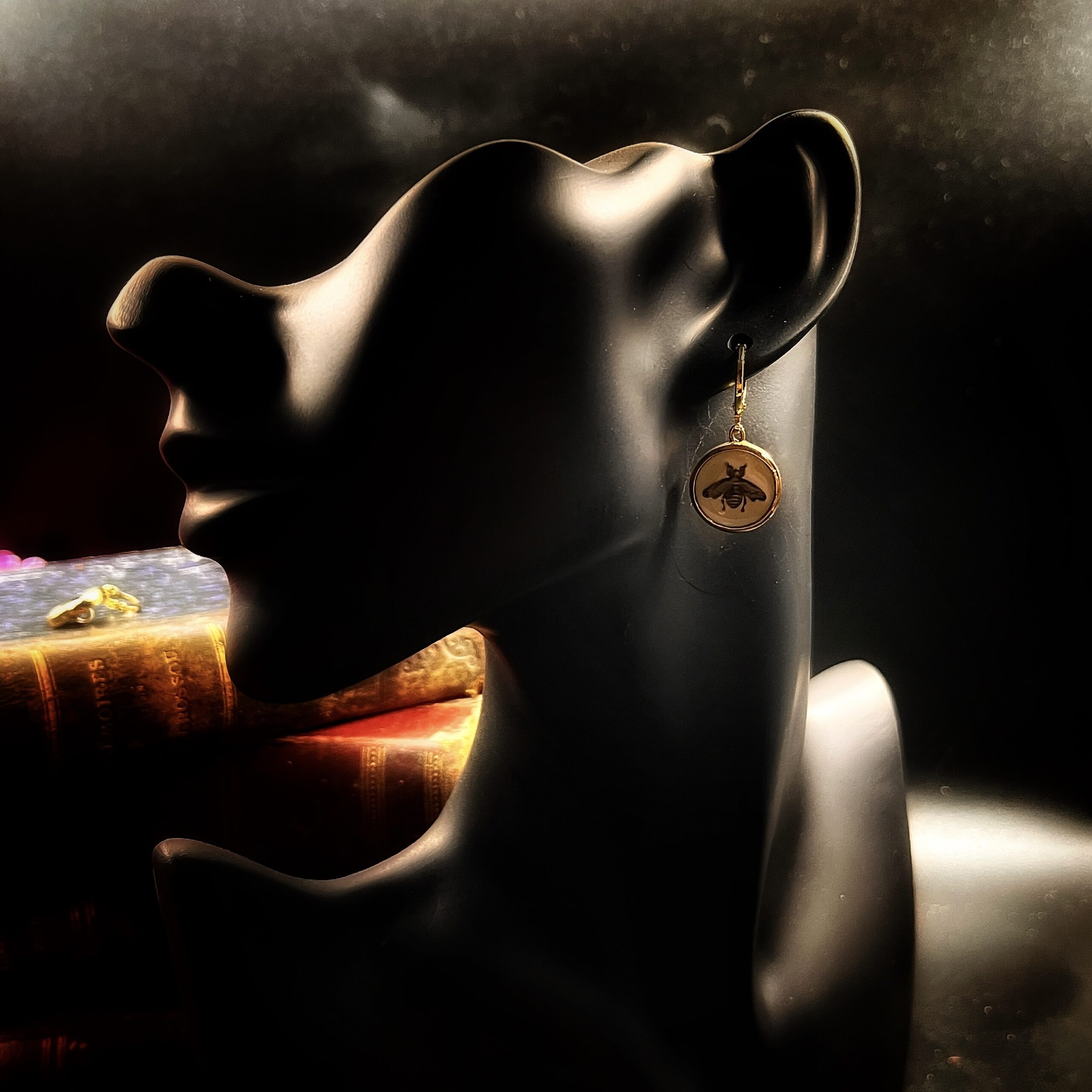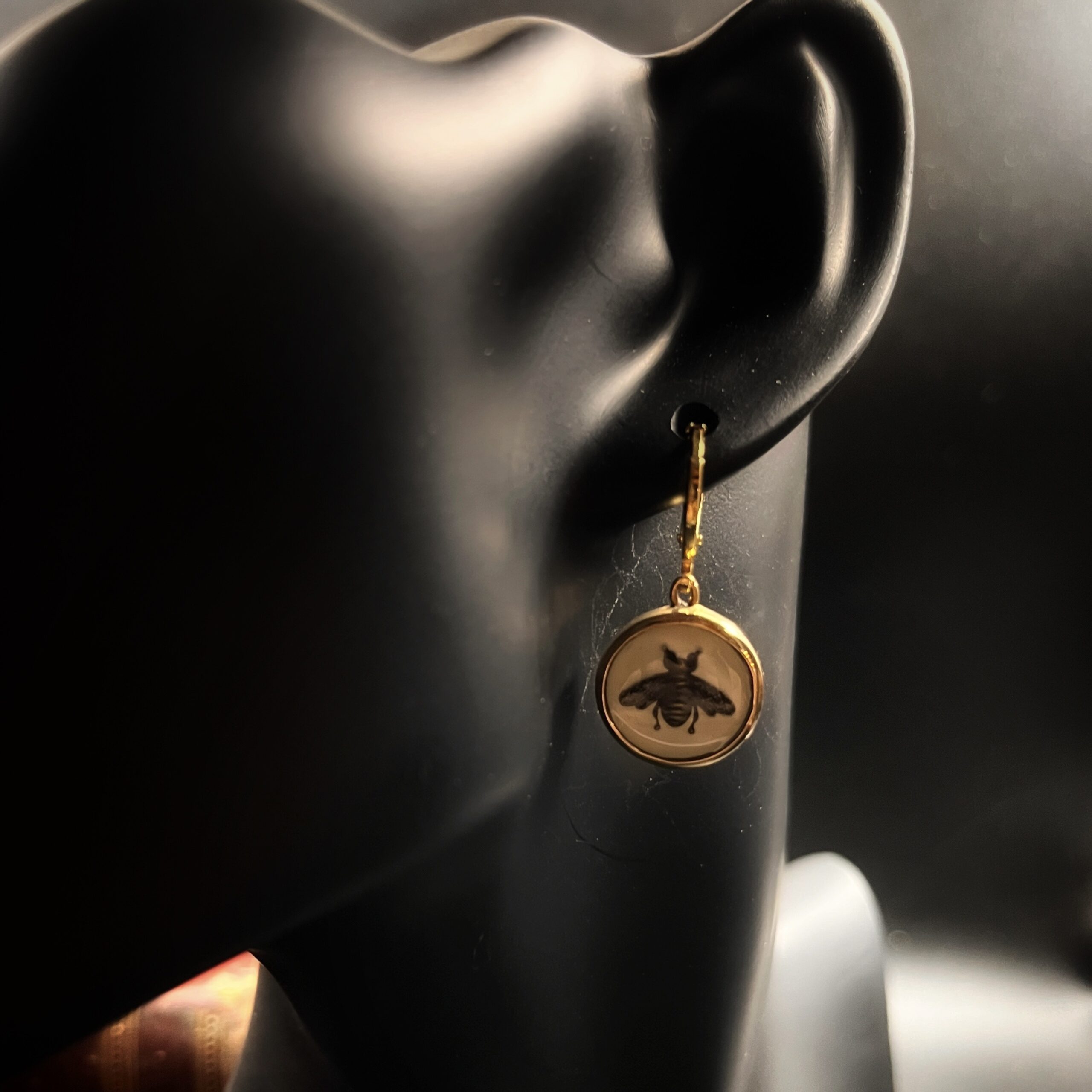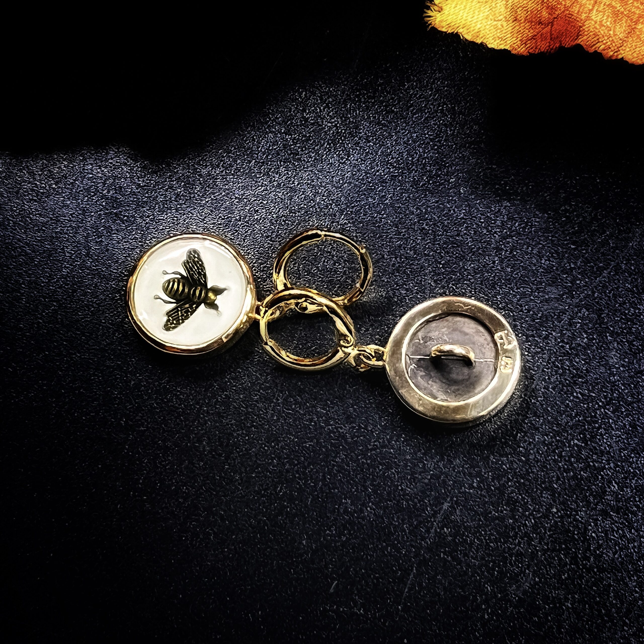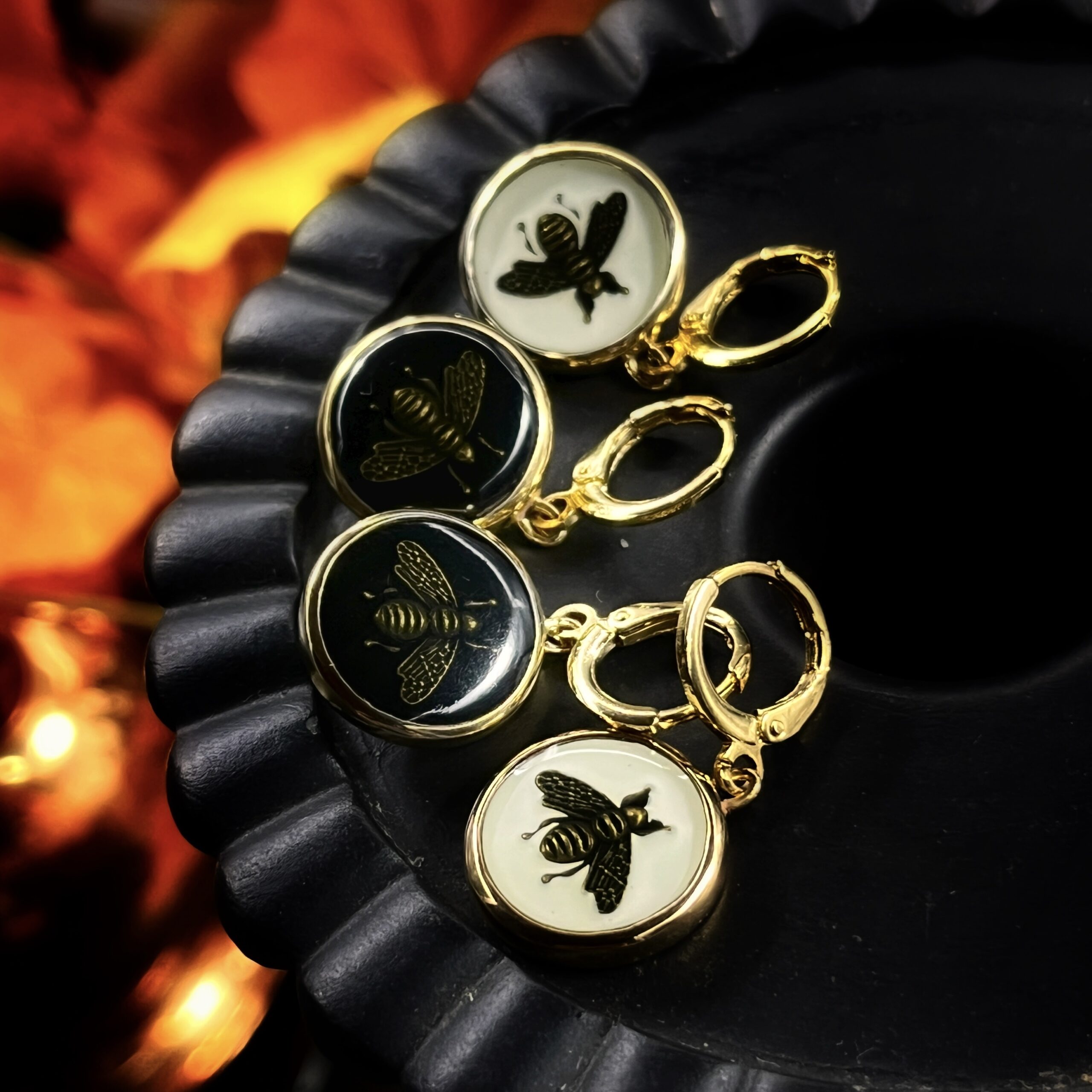 “Pascale” Black Gold Vintage Gucci Bee Button Earrings