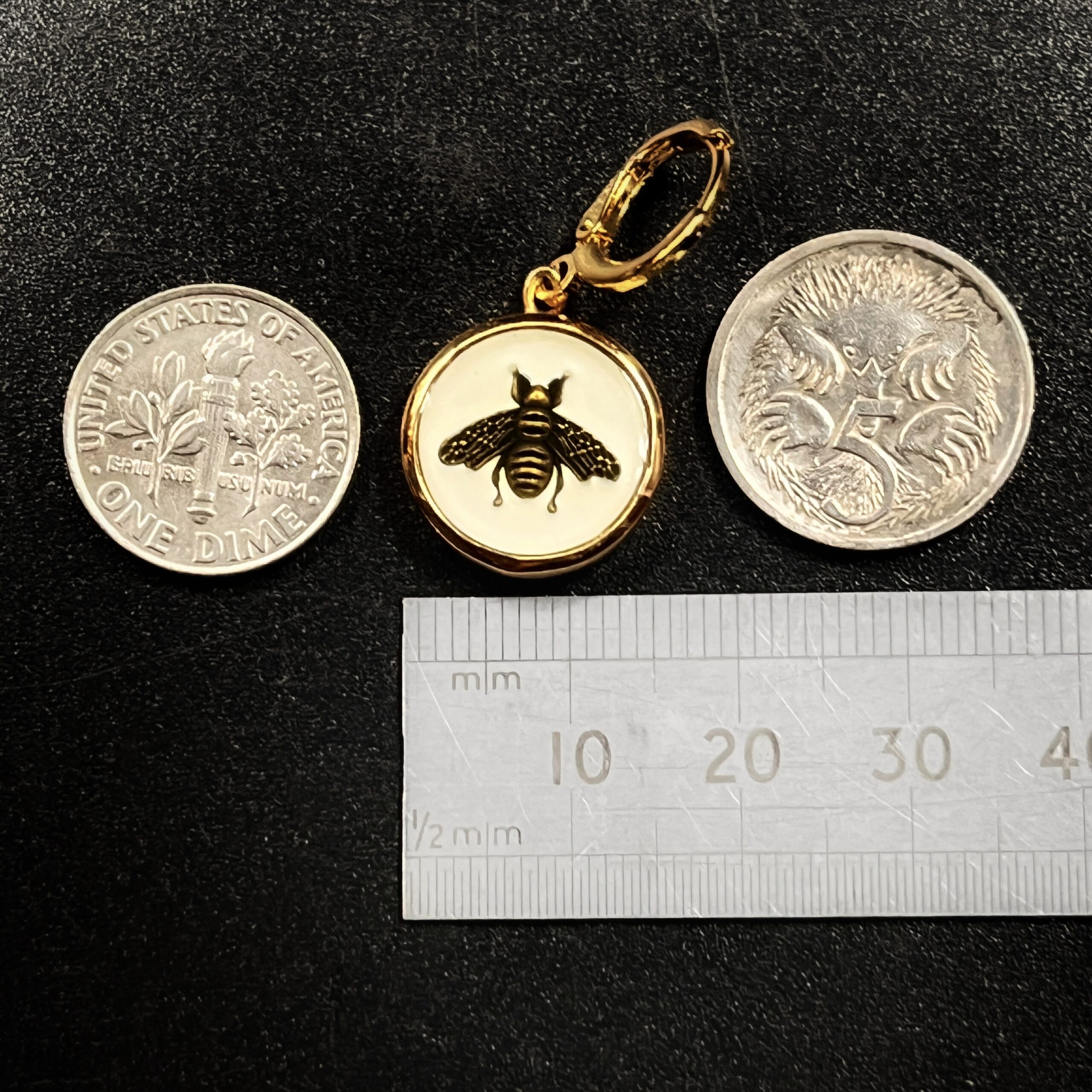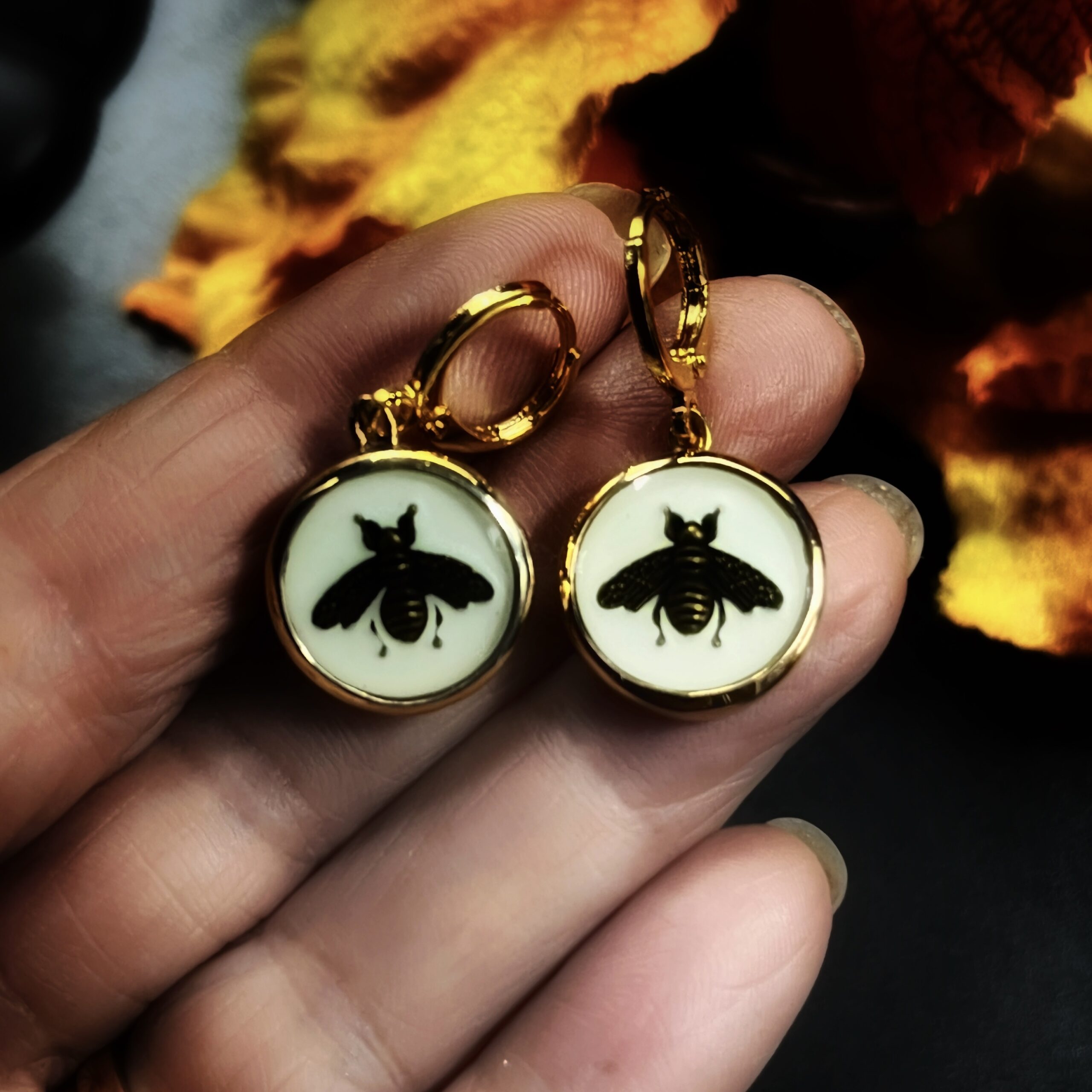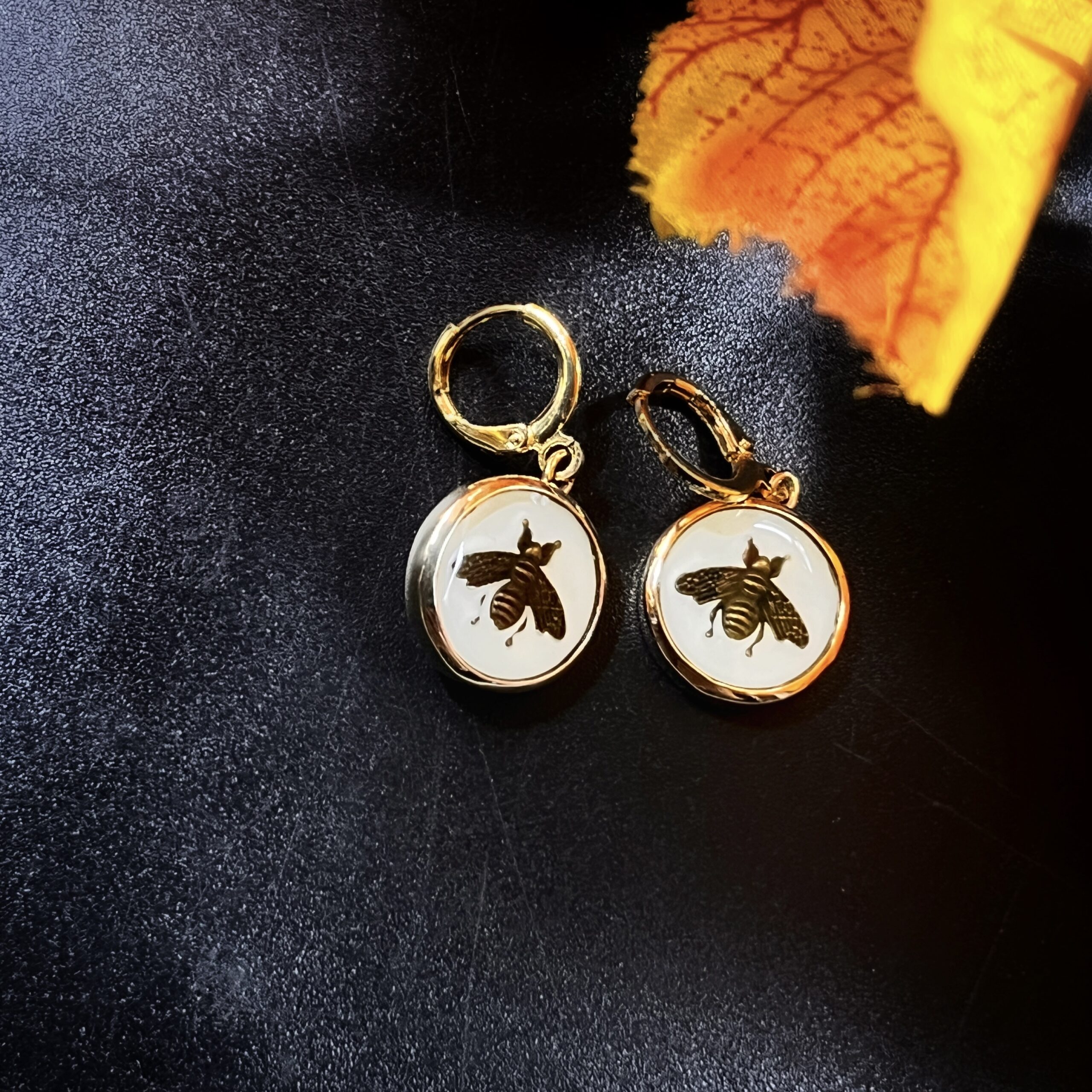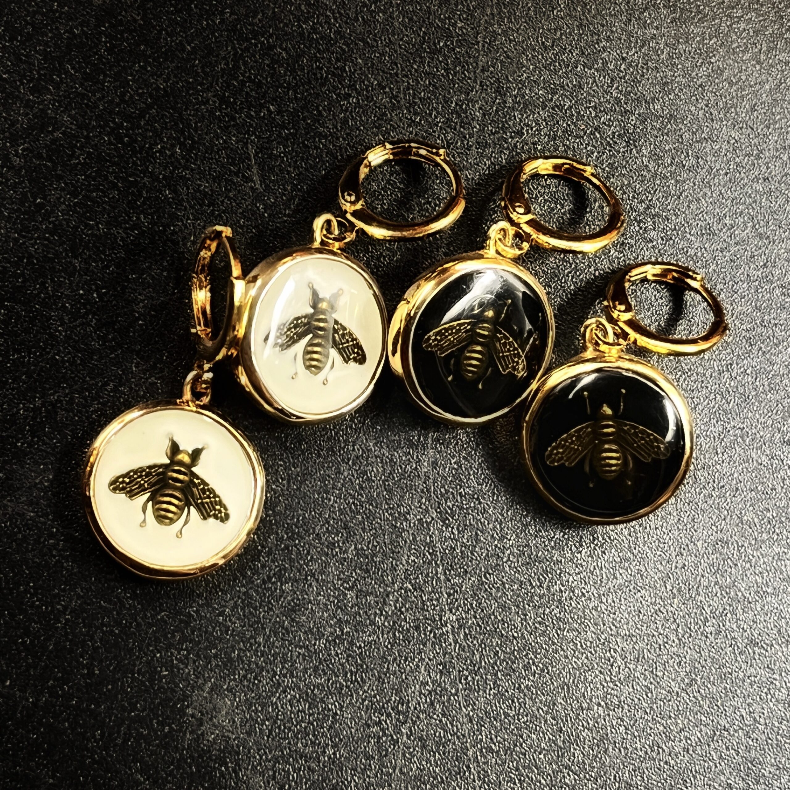 “Pascale” Black Gold Vintage Gucci Bee Button Earrings