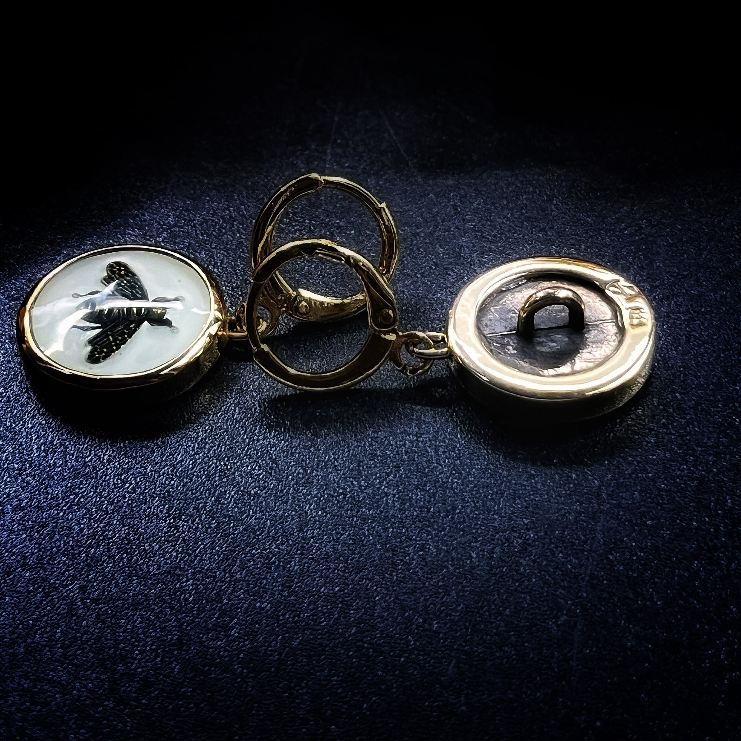 Each pair is individually handcrafted in my atelier in the French Alps, where I transform original vintage Gucci buttons into modern heirloom pieces. This new vermeil version brings an elevated richness while preserving everything collectors already love about the originals. The huggie hoops offer a soft, rounded silhouette that hugs the ear and complements the bee’s elegance.