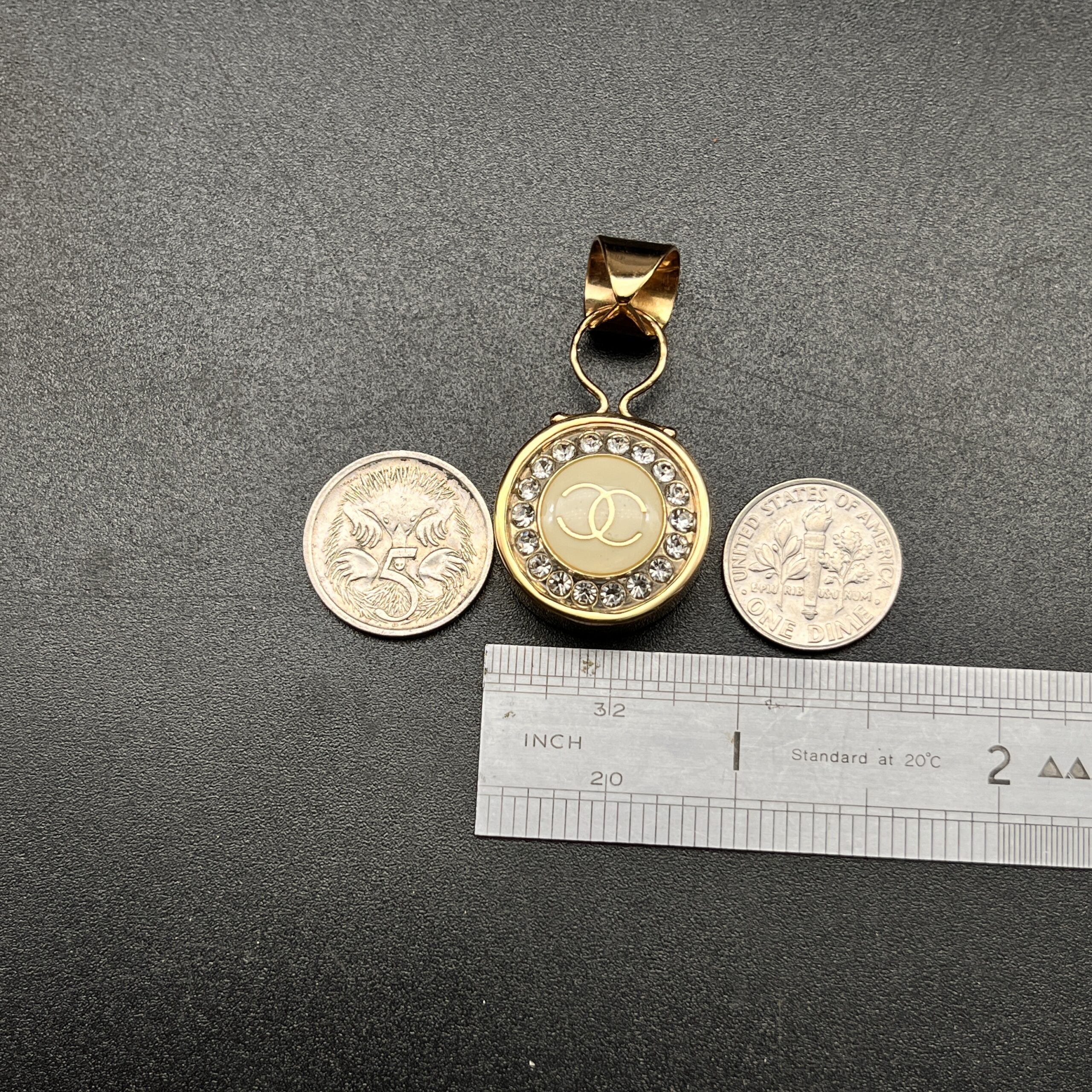 Every step of this creation has been completed using traditional Goldsmith techniques in solid sterling silver, with a warm, generous 24ct yellow gold vermeil plating. Of course to retain the high value of such a button, the back of the pendant has a little viewing port, that shows the original makers marque and the button hook itself. This is something unique to Porsha Bella Jewellery and is vital to keep the value of such a unique button. While the button itself is an authentic Chanel piece from the 1980s, the design and craftsmanship of this pendant are entirely my own. This makes your pendant a true Porsha Bella creation. Blending history, fashion, and artistry in a way you can feel special every time you wear it.